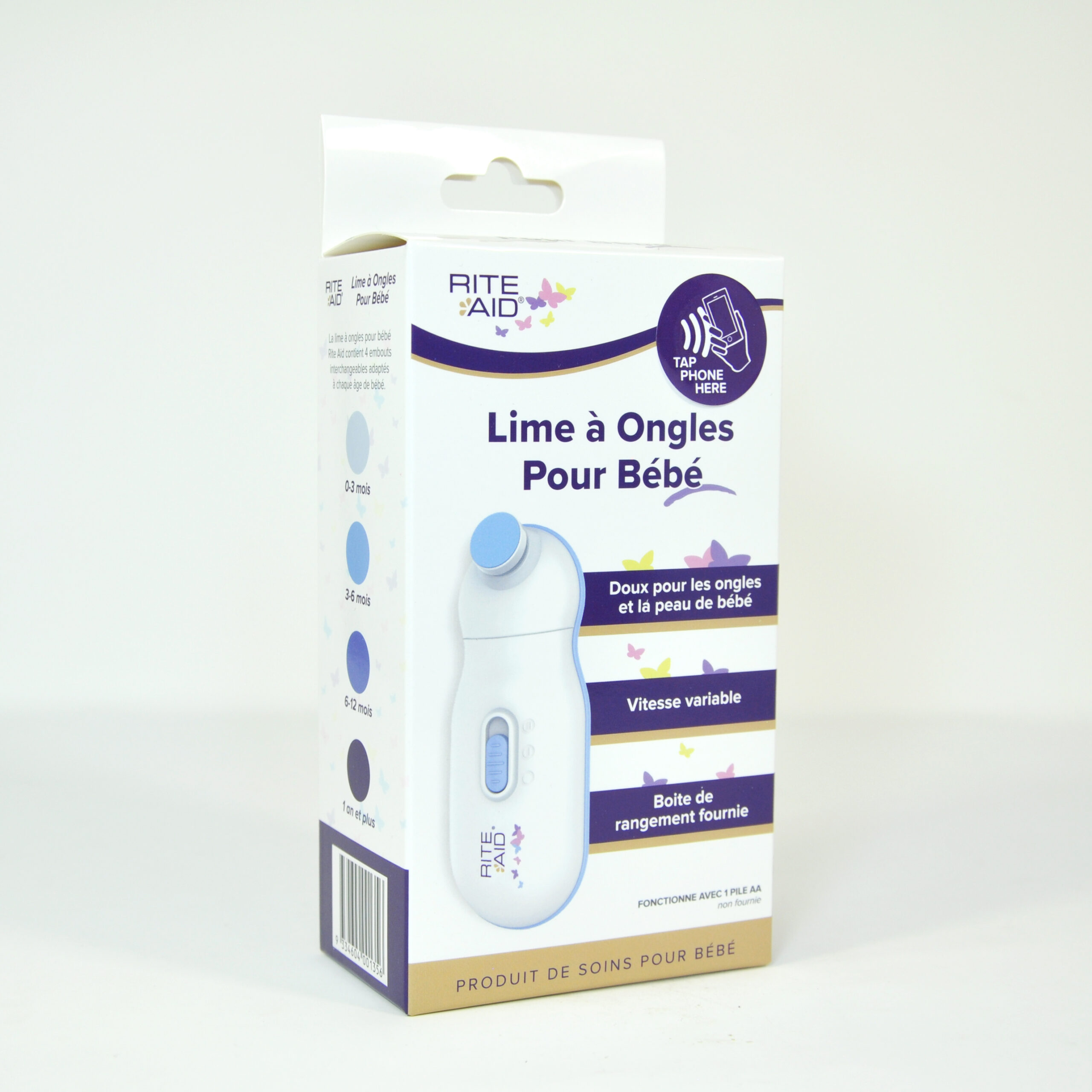 La lime à ongles pour bébé Rite Aid est conçue pour les ongles souples de bébé. S’éloignant de l’utilisation du coupe-ongles et des ciseaux traditionnel, sa fonction de limage rotative prévient les dommages à la peau et aux ongles du bébé.
