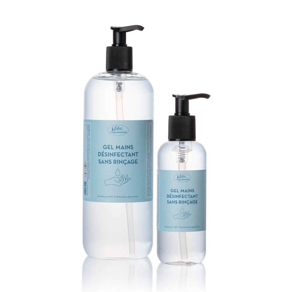 La solution hydroalcoolique Aquaromat, dans son flacon pompe de 300ml, est le produit idéal pour emmener partout avec soi et être sûr de se protéger contre les virus et bactéries ambiantes.