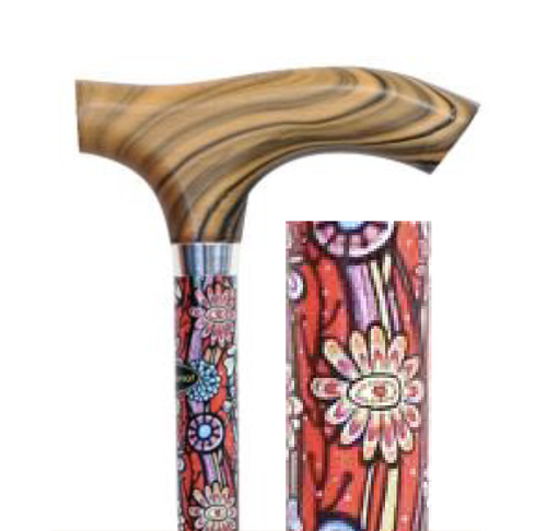 Canne alu dessin fleurs diamètre 16 réglable poignée bois AQ8310