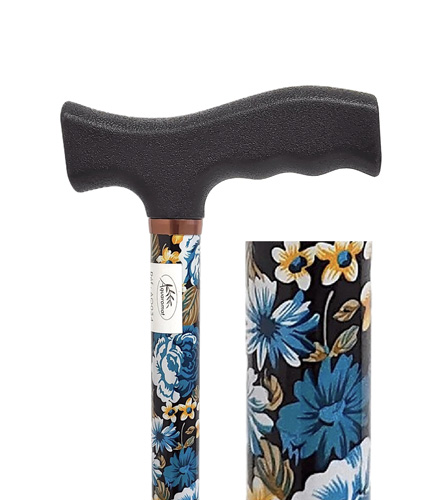 Canne alu fleurs bleues diamètre 16 réglable poignée noire AQ034