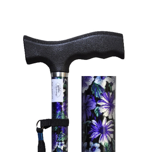 Canne alu fleurs violettes diamètre 16 réglable poignée noire AQ029