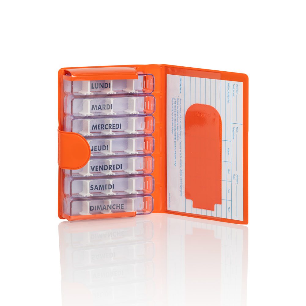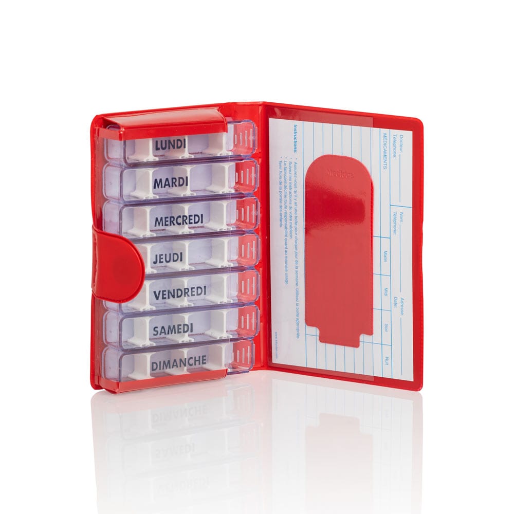 Pilulier semainier au format portefeuille.