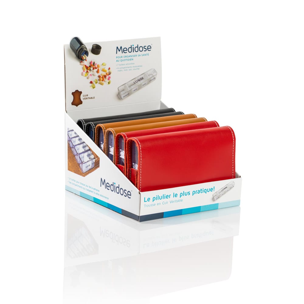 Pilulier Médidose en cuir véritable